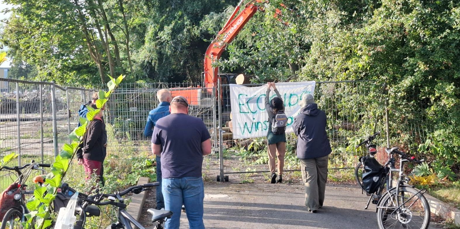 Een klein clubje actievoerders verzamelde zich maandagochtend voor de hekken bij het terrein. De kap ging echter rustig van start.