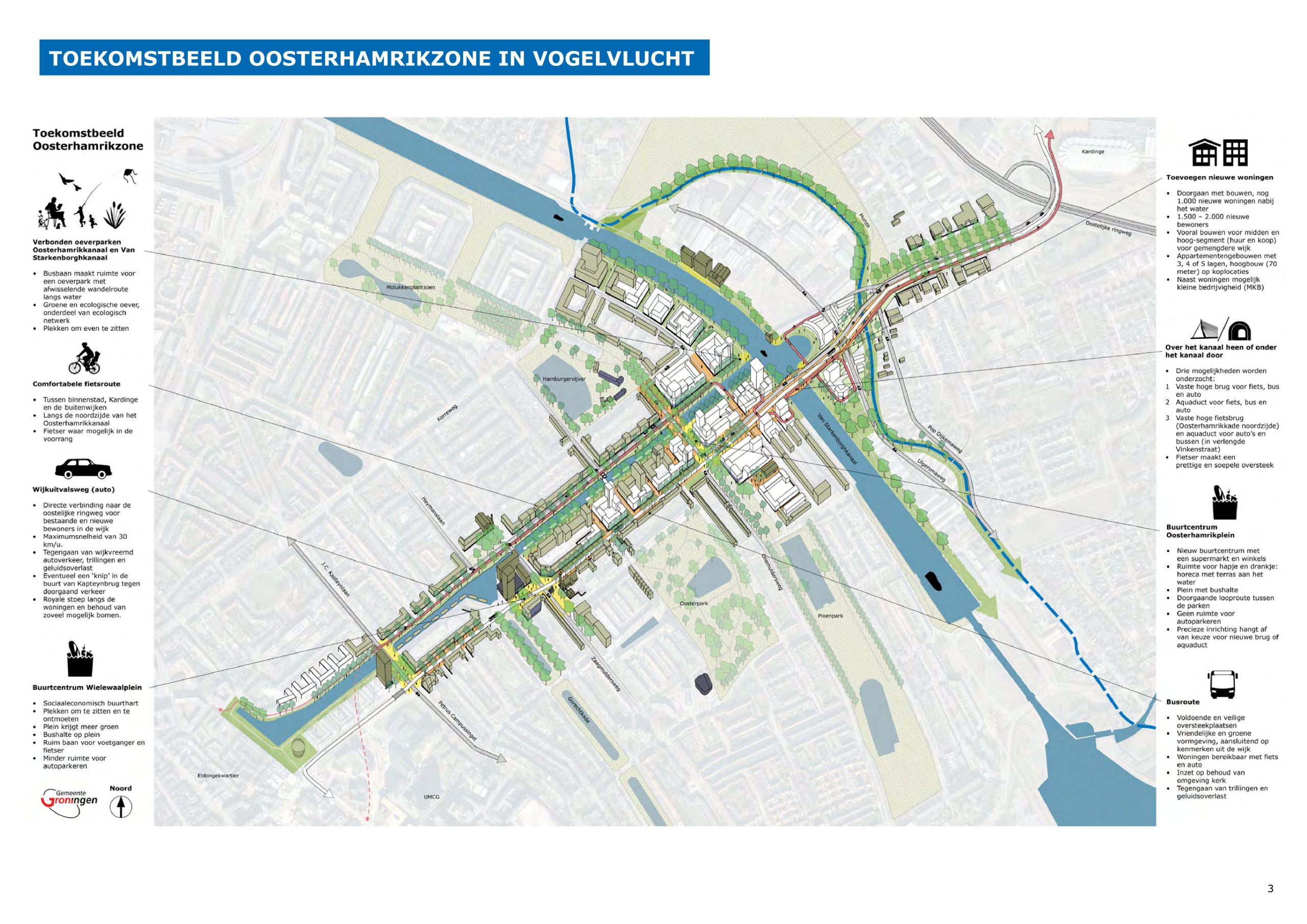 In een zogenoemd kaderstellend plan is bedacht dat de huidige busbaan verdwijnt en plaats maakt voor een parkachtige omgeving aan het Oosterhamrikkanaal. Dat moet een aantrekkelijk gebied worden om te verblijven. De Vinkenstraat wordt een zogenoemde busstraat. Die bussen zorgen voor de belangrijke verbinding met Kardinge. In het verlengde daarvan moet er wel een nieuwe, hogere brug over het van Starkenborghkanaal komen. Eigenlijk wil het stadsbestuur al snel een fietsbrug over het kanaal.