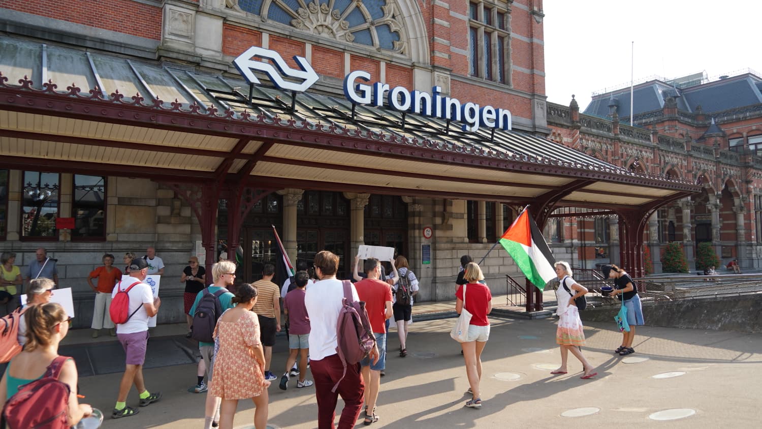 Een groep pro-Palestina demonstranten liep donderdag vanaf 18.00 uur vanaf de Grote Markt richting het Hoofdstation. Fractievoorzitter van de SP in de Tweede Kamer, Jimmy Dijk, liep ook mee.