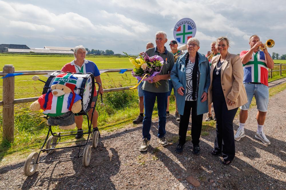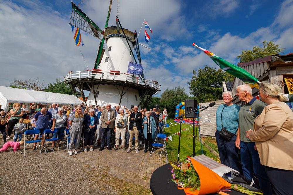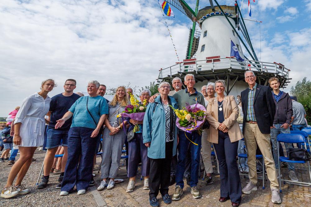 “Ik zal het je nog sterker vertellen: vanochtend om 08.30 uur was hij hier nog om de vlaggetjes in de molen op te hangen en alles feestelijk aan te kleden. Hij had op dat moment nog geen idee. Bij de opening van de festiviteiten was burgemeester Roelien Kamminga (VVD) aanwezig. Op een gegeven moment riep zij Henk naar voren. Tegelijkertijd kwam zijn familie achter de molen vandaan, waar ze zich hadden verstopt. Het gezicht van Henk was prachtig; hij dacht ‘wat moeten die nu hier allemaal?’ Daarop vertelde de burgemeester wat er ging gebeuren. Niet veel later kreeg hij de versierselen uitgereikt. Het is fantastisch dat het zo heeft uitgepakt. Dat verdient Henk ook.”