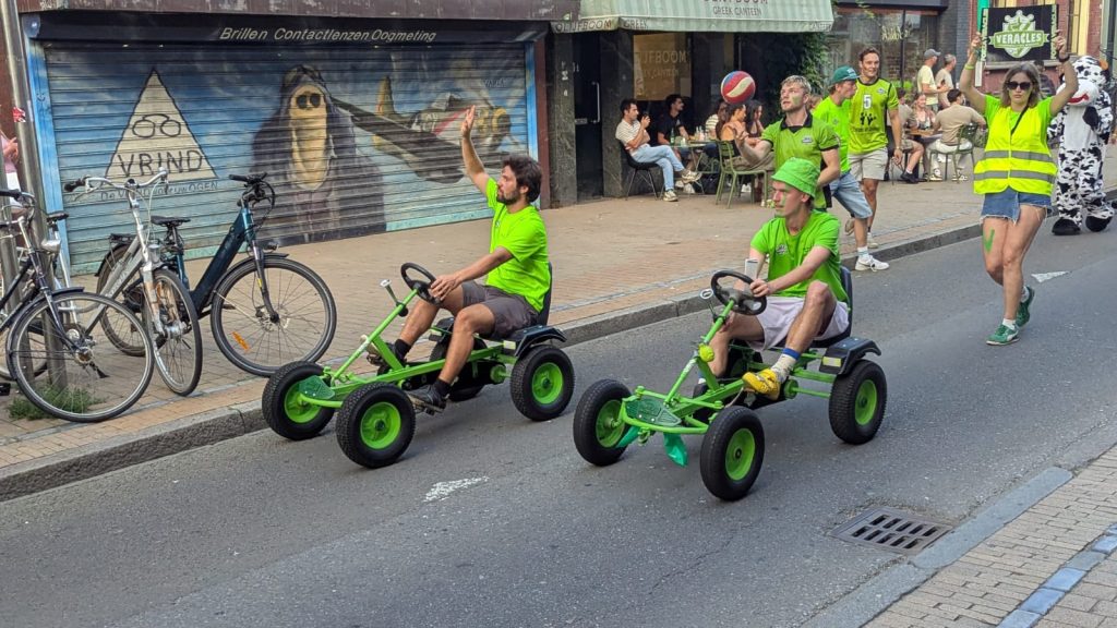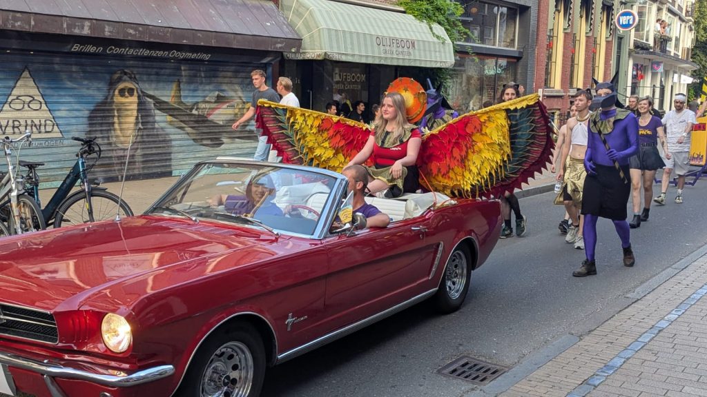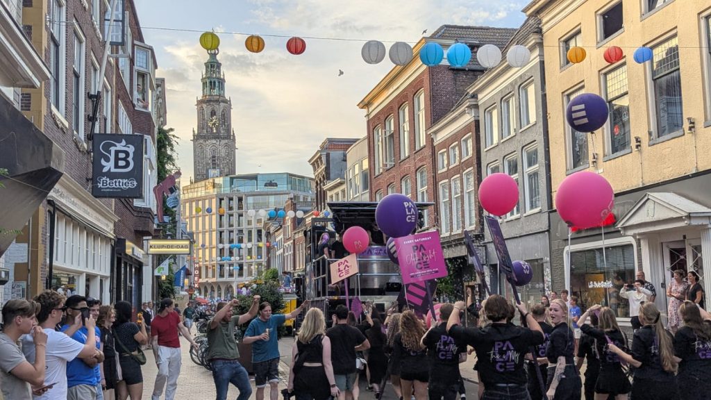 “Tijdens de KEI-parade wordt de binnenstad echt een beetje op de kop gezet,” laat het KEI-bestuur weten. “De stoet begon op de Ossenmarkt en trok met veel kabaal door de straten. Daarbij werd er een route gevolgd via het centrum, via de Oosterstraat en Boteringestraat terug naar de Ossenmarkt.”