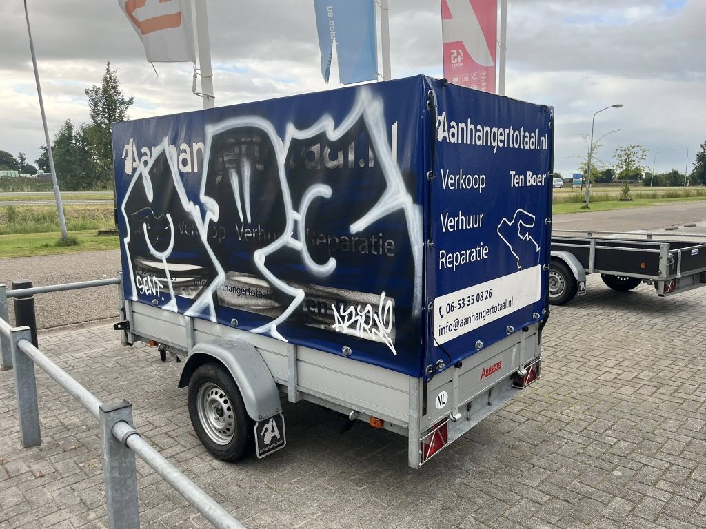 Het bedrijf aanhangertotaal.nl uit Ten Boer looft een beloning uit voor informatie die leidt tot het vinden van de twee personen die in de nacht van vrijdag op zaterdag een aanhanger met graffiti hebben beklad.