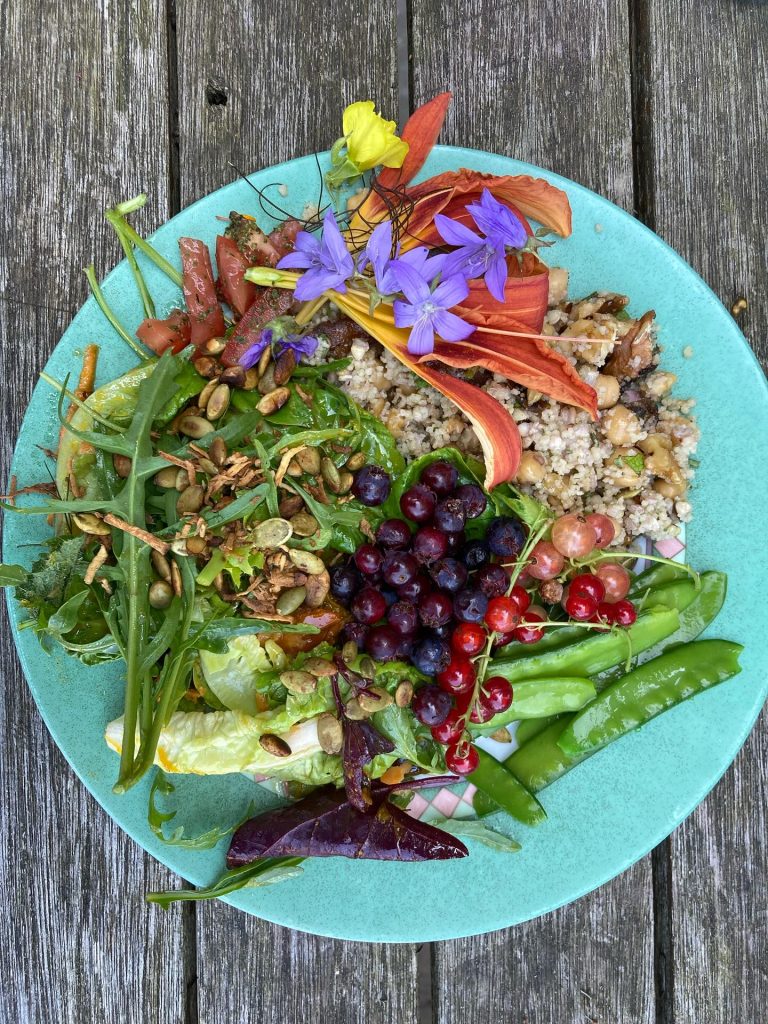 “Eigenlijk is elk seizoen goed. Afhankelijk van de droogte, de natheid of het aantal zonuren zijn er altijd soorten die het goed en minder goed doen. Op dit moment kunnen de bramen en appels geoogst worden, en de uiensoepboom komt er aan. We hadden eerder dit seizoen een goede bessenoogst, maar de frambozen vielen tegen. En ook de shiitake, een soort paddenstoel, was geen succes. We willen ook bereiken dat er het hele jaar door oogst zal zijn: in het voorjaar moet je dan bijvoorbeeld denken aan speenkruid, dat eetbaar is, en in de herfst aan duindoornbessen.”
