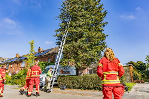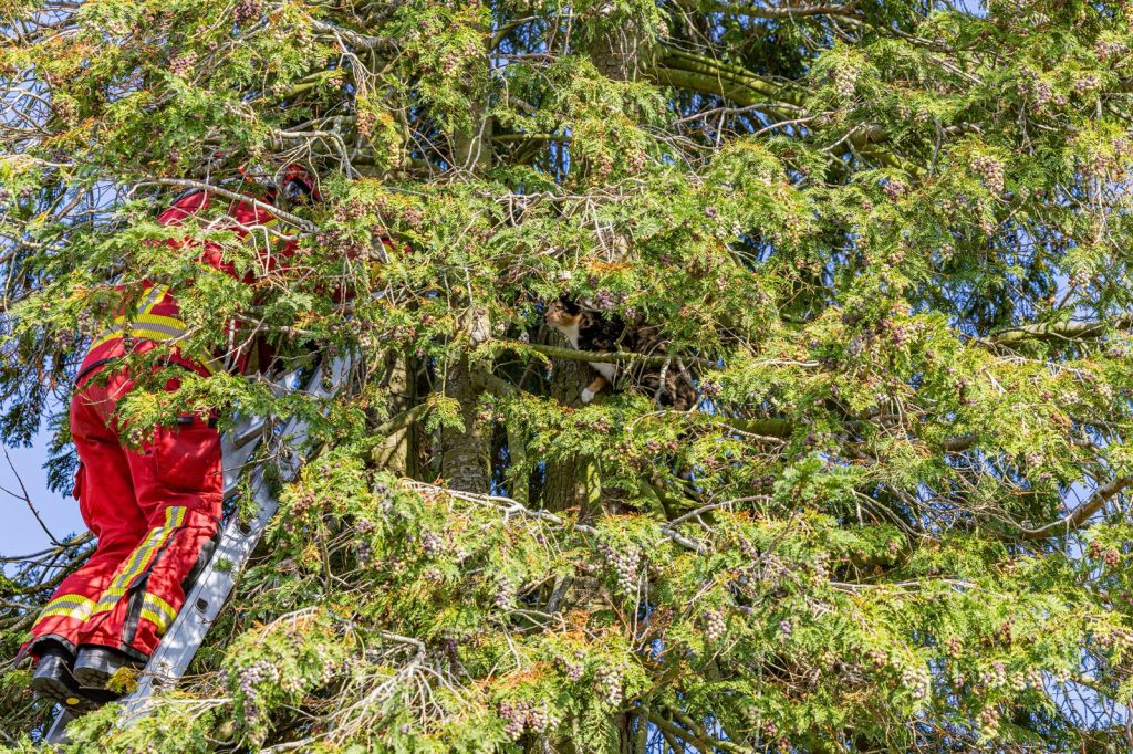 De Harense brandweer moest zondag in actie komen aan de Gorechtstraat in Haren, waar een kat het hogerop had gezocht. Dat meldt nieuwsfotograaf Rick ten Cate van tencatefotografie.nl.