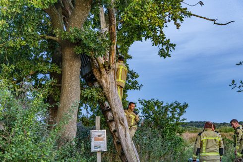 De melding van een persoon in problemen kwam rond 20.00 uur bij de hulpdiensten binnen, waarna een tankautospuit van brandweer Eelde naar de locatie werd gestuurd. “De vrouw was met haar hond aan het wandelen,” vertelt nieuwsfotograaf Rick ten Cate van tencatefotografie.nl. “Ter hoogte van de hoogzit, niet ver van De Onlanderij bij Eelderwolde, klom ze een boom in. Toen de vrouw weer naar beneden wilde, durfde ze dit niet meer. Een voorbijganger zag de vrouw zitten en schakelde de hulpdiensten in.”