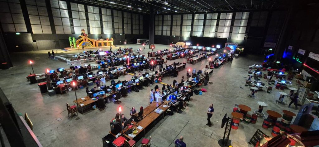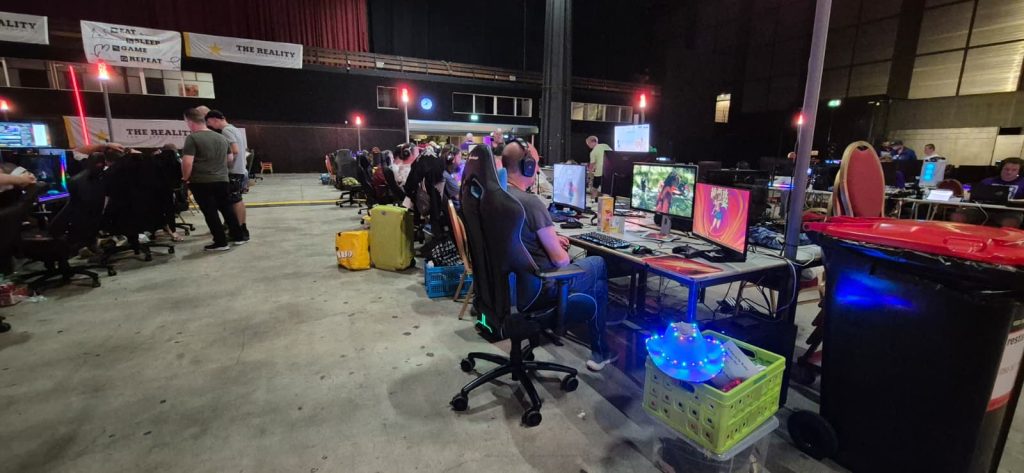 “Het is precies zoals je het beschrijft. De auto wordt voor Martiniplaza geparkeerd. Vaak hebben ze hun gamingstoel bij zich, waarop de desktop wordt gezet. Vaak hebben ze ook nog wat andere apparatuur bij zich, zoals een beeldscherm, toetsenbord en koptelefoon. En met behulp van de gamingstoel worden de spullen de hal ingerold. Daar is het een kwestie van opbouwen, installeren en de internetkabel aansluiten op het centrale punt in het midden van de zaal, waarna het feest kon beginnen.”