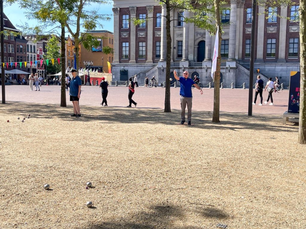 “Het ging om een landelijk initiatief. De Nederlandse Jeu de Boules Bond (NJBB) organiseerde gisteren de allereerste Nationale Petanquedag. Het doel van deze dag is om de sport petanque nog beter op de kaart te zetten, mensen samen te brengen en leden en niet-leden een leuke dag te bezorgen. Wij kregen als vereniging het verzoek hieraan een bijdrage te leveren, en dat hebben we met beide handen aangegrepen. Het resultaat was gisteren te zien op de Grote Markt.”