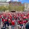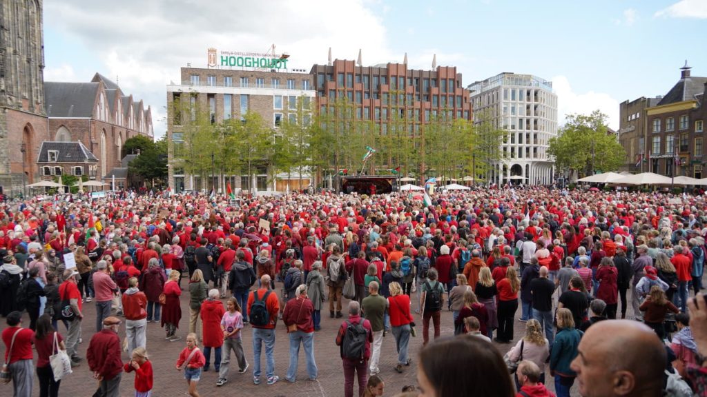 “De Grote Markt staat vol met mensen,” beschrijft een nieuwsfotograaf de situatie. “Velen hebben gehoor gegeven aan de oproep om in rode kleding naar de demonstratie te komen. Er vinden toespraken plaats en er is muziek. Het protest wordt afgesloten met een wandeling door de binnenstad.” De politie geeft aan dat het protest ongeveer tweeduizend mensen op de been heeft gebracht.