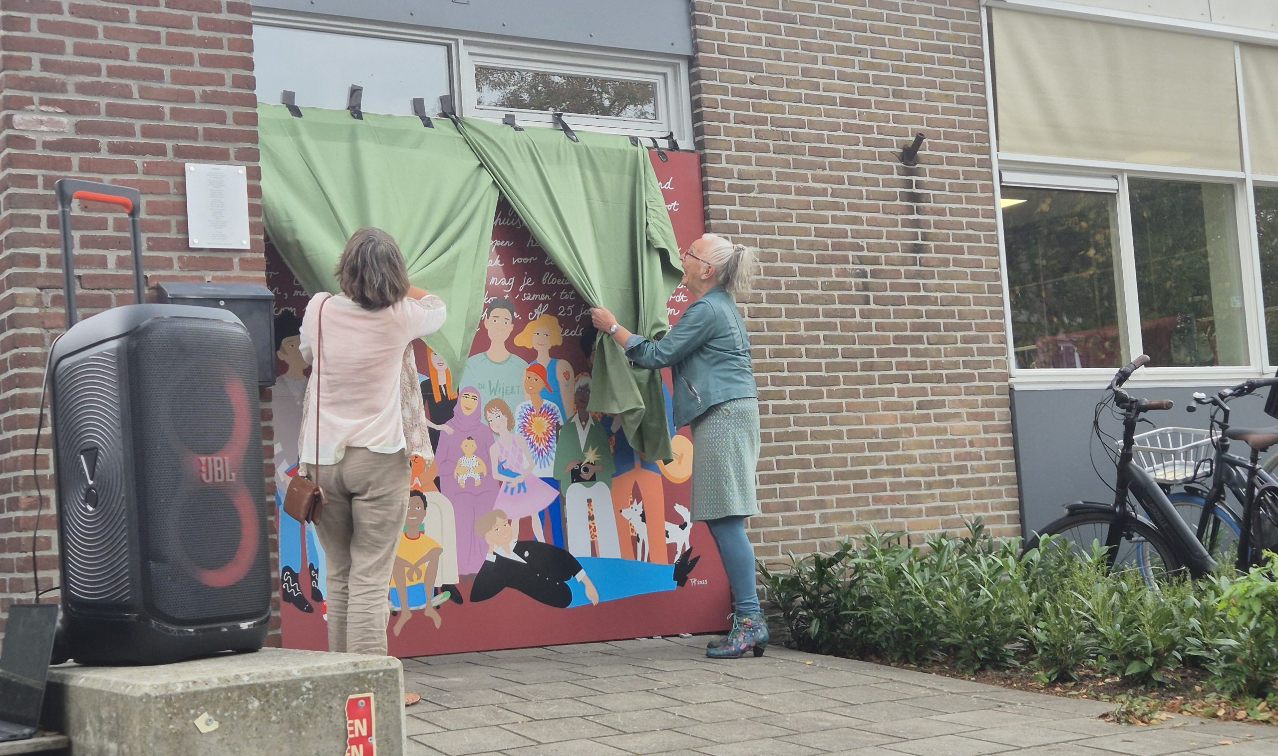 “Dat klopt. ‘Dichter in de buurt’ Jakob de Boer heeft vanwege het 25-jarig bestaan van het MFC een gedicht geschreven. Kunstenares Tatiana Pavlova heeft op basis van een van de coupletten van dit gedicht een schildering gemaakt. Zowel De Boer als Pavlova wonen in het zuiden van de stad en zijn beiden in de wijk bekend vanwege hun optreden tijdens ‘De Wijk de Wereld’ vorig jaar. Tijdens de opening heeft De Boer het gedicht voorgedragen en daarna is het kunstwerk van Pavlova onthuld. In dit kunstwerk komt vooral naar voren waar het MFC voor staat.”