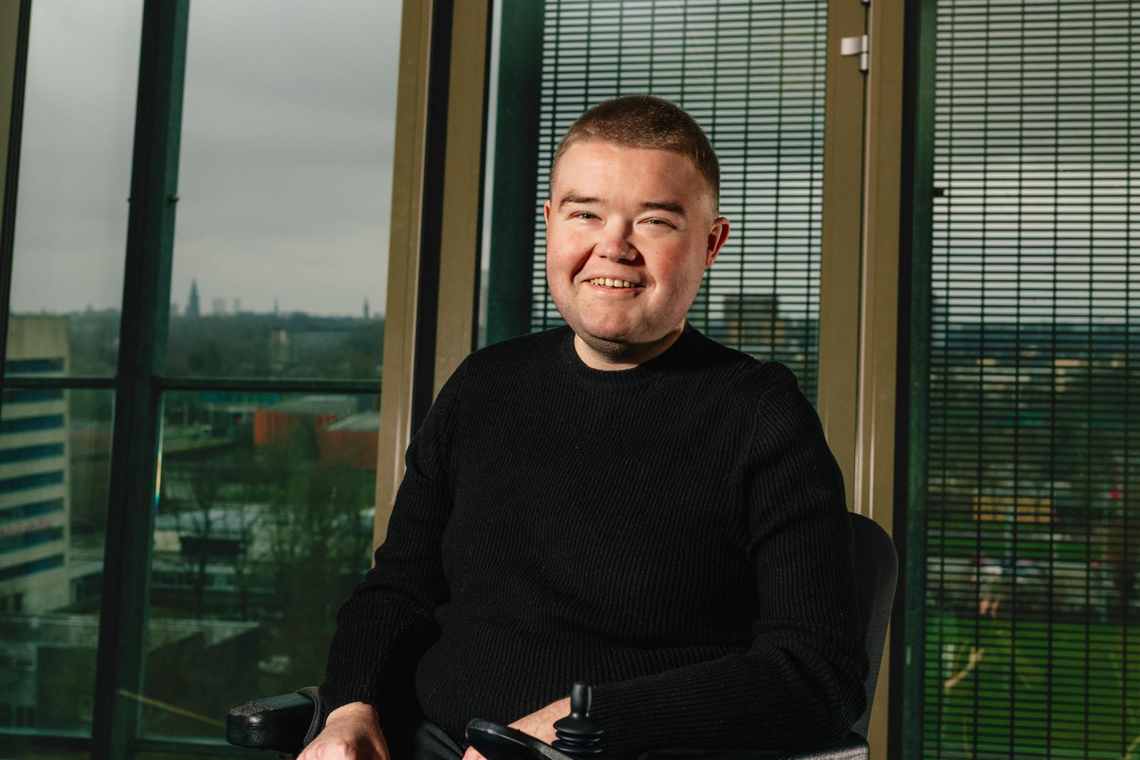 “Dat was denk ik in 2012. Ik volgde de opleiding Journalistiek en Fotografie aan ROC Friese Poort in Drachten. Om die opleiding te kunnen voltooien, moest er een stage worden gelopen: een snuffelstage van drie weken. Voor die stage heb ik mij aangemeld bij OOG. En eigenlijk was die start heel bijzonder. OOG was toen nog gevestigd in ‘De Studio’ aan de Akkerstraat. De hoofdingang was namelijk niet rolstoelvriendelijk (Ferwerda heeft de spierziekte Duchenne en is daardoor afhankelijk van een rolstoel, red.). Van tevoren had ik niet gezegd dat ik in een rolstoel zit. Het kennismakingsgesprek had ik toen met Annelies van Santen. Zij kwam met de oplossing om een goederenlift te gebruiken aan de andere kant van het pand, bij de Moesstraat. Als die lift er niet was geweest, dan was dit allemaal niet gebeurd. Het toeval heeft zo moeten zijn.”