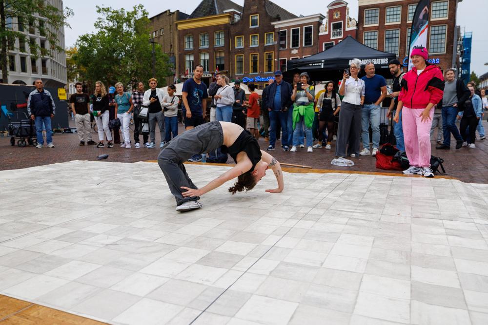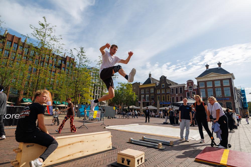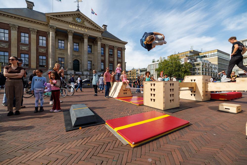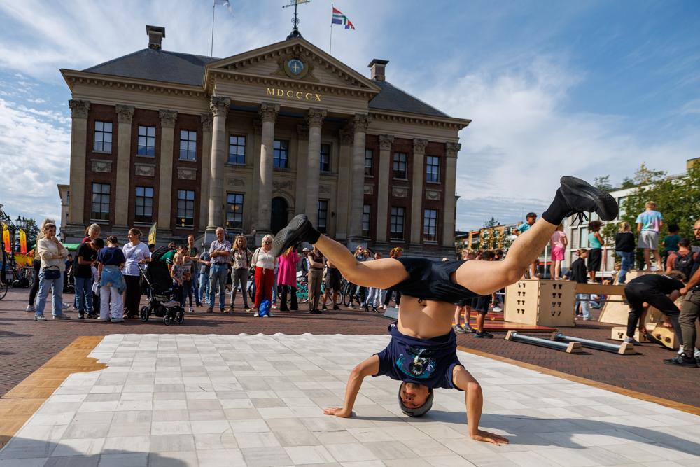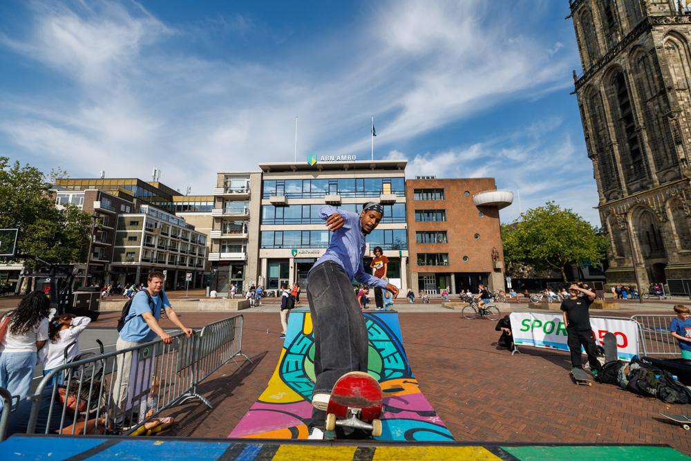 “Dat kun je wel zeggen. Het begon heel mooi, maar halverwege het programma moesten we vanwege de regen besluiten om te stoppen. Ondanks dat kunnen we terugkijken op een heel geslaagd evenement. Ons doel was om de breedtesport op een mooie manier neer te zetten in de huiskamer van de stad. Het moest een evenement worden waarop jong en oud in aanraking zouden komen met de urban sports. De Grote Markt leent zich daar uitstekend voor. We hebben een publiek ontmoet dat waarschijnlijk voor heel andere doeleinden de binnenstad in was gegaan en tegen ons aanliep. Dat heeft heel goed uitgepakt.”