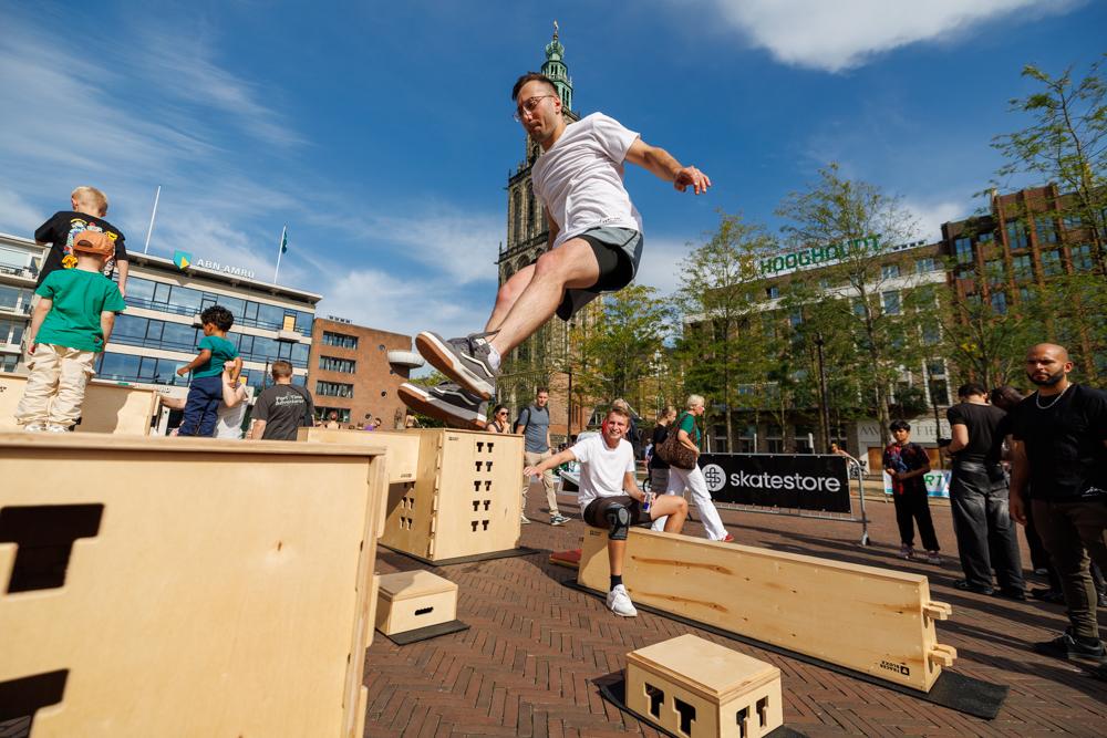 “We bevinden ons momenteel in de Nationale Sportweek. Dat is een heel mooi haakje om dit evenement aan op te hangen. In het verleden hebben we ook dergelijke showcases opgezet. Die vonden bijvoorbeeld plaats op de skatebaan of in het Colosseum. We keken daarbij welke locatie we vooral konden gebruiken. En dat was absoluut leuk en waardevol, waarbij onze doelgroep en ook de aanhang daar blij mee waren. Het zorgde ook voor aanwas van onderaf. Maar wat je eigenlijk wilt, is dat je mensen die niet bekend zijn met de urban sports kennis laat maken. De Grote Markt is de afgelopen jaren flink veranderd. De ondergrond is nu veel geschikter voor dergelijke evenementen als dit.”