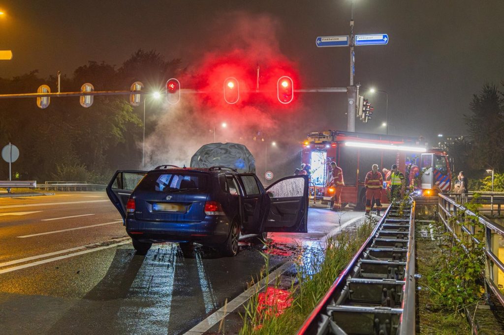 Een personenauto is dinsdagavond op de westelijke ringweg zwaar beschadigd geraakt door brand, meldt nieuwsfotograaf Rick ten Cate van tencatefotografie.nl.
