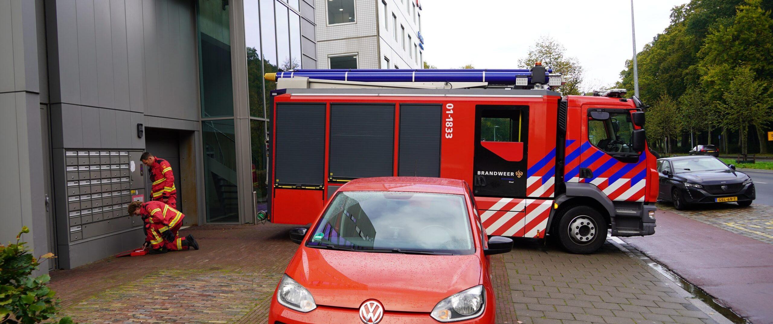 Brandweerlieden wisten de bestuurder veilig uit de autolift onder woontoren Pino Blanc te halen. De oorzaak van de storing in de lift is onbekend.