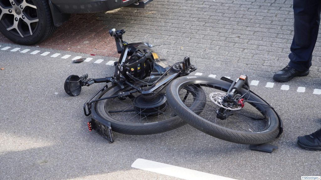 De fiets is compleet vernield. Het slachtoffer werd behandeld in de ambulance.