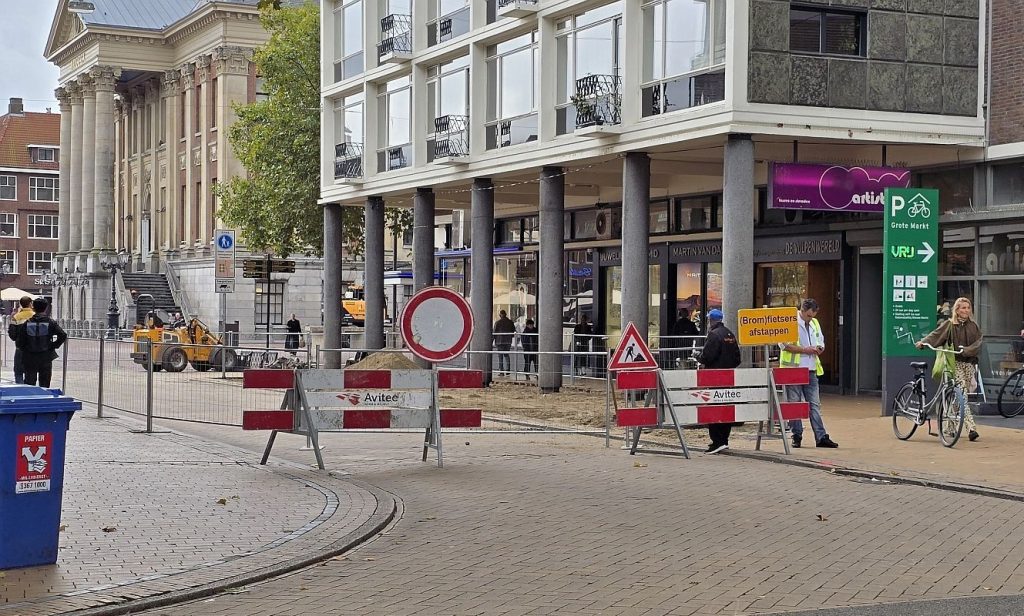 Tijdens de werkzaamheden blijven de winkels en de fietsenstalling bij de Grote Markt bereikbaar, maar wel alleen voor voetgangers. Fietsers moeten afstappen en het overige verkeer wordt via borden omgeleid.