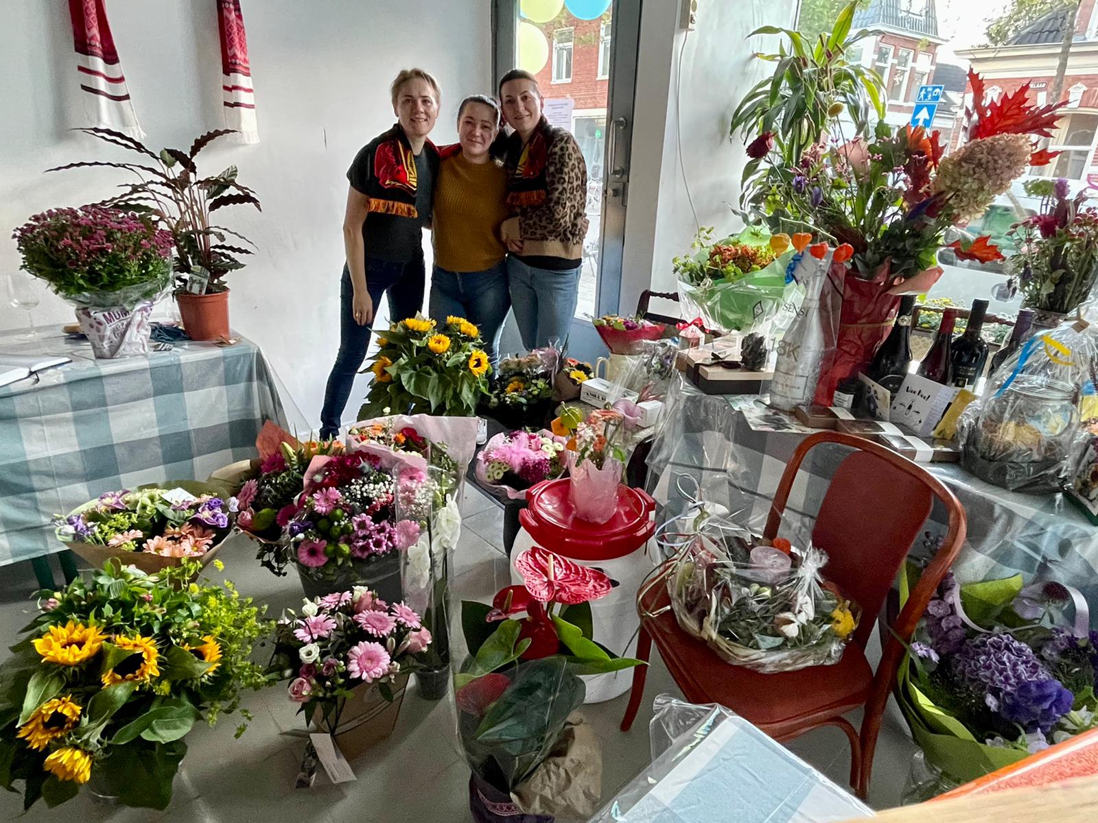 De drie dames die Ukraine Food runnen in hun restaurant vol bloemen en cadeaus bij de opening in oktober 2022. Foto: ingezonden