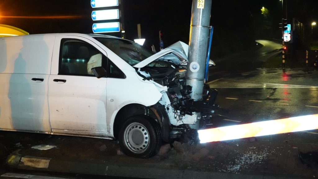 Het busje knalde met een forse klap tegen het verkeersportaal, waarbij zware schade ontstond. Hulpdiensten waren snel ter plaatse. Behalve een ambulance en de politie kwam ook de brandweer naar de locatie, maar niemand bleek bekneld te zitten.