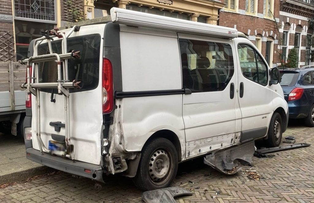“We begrijpen niet hoe dit heeft kunnen gebeuren”, vertelt Eric Nederkoorn, eigenaar van het camperbusje. “De Nieuwe Blekerstraat is een rustige, smalle straat. Als je hier niets te zoeken hebt, dan hoef je hier niet te zijn.” Toch ging het afgelopen nacht rond 05.45 uur mis. “Een automobilist is met een naar alle waarschijnlijkheid hoge snelheid tegen het busje gebotst. Zelf hebben wij het niet gehoord. Een buurtbewoner hoorde het wel en heeft ons uit bed gehaald. Op straat lagen allerlei onderdelen, zowel van ons camperbusje als van de auto van de dader. Al deze materialen hebben we veiliggesteld. De onderdelen bevatten namelijk serienummers, die ons hopelijk richting de dader gaan wijzen. We weten inmiddels dat het om een zwartkleurige auto gaat. De automobilist is naar alle waarschijnlijkheid daarna richting de Aweg gereden.”