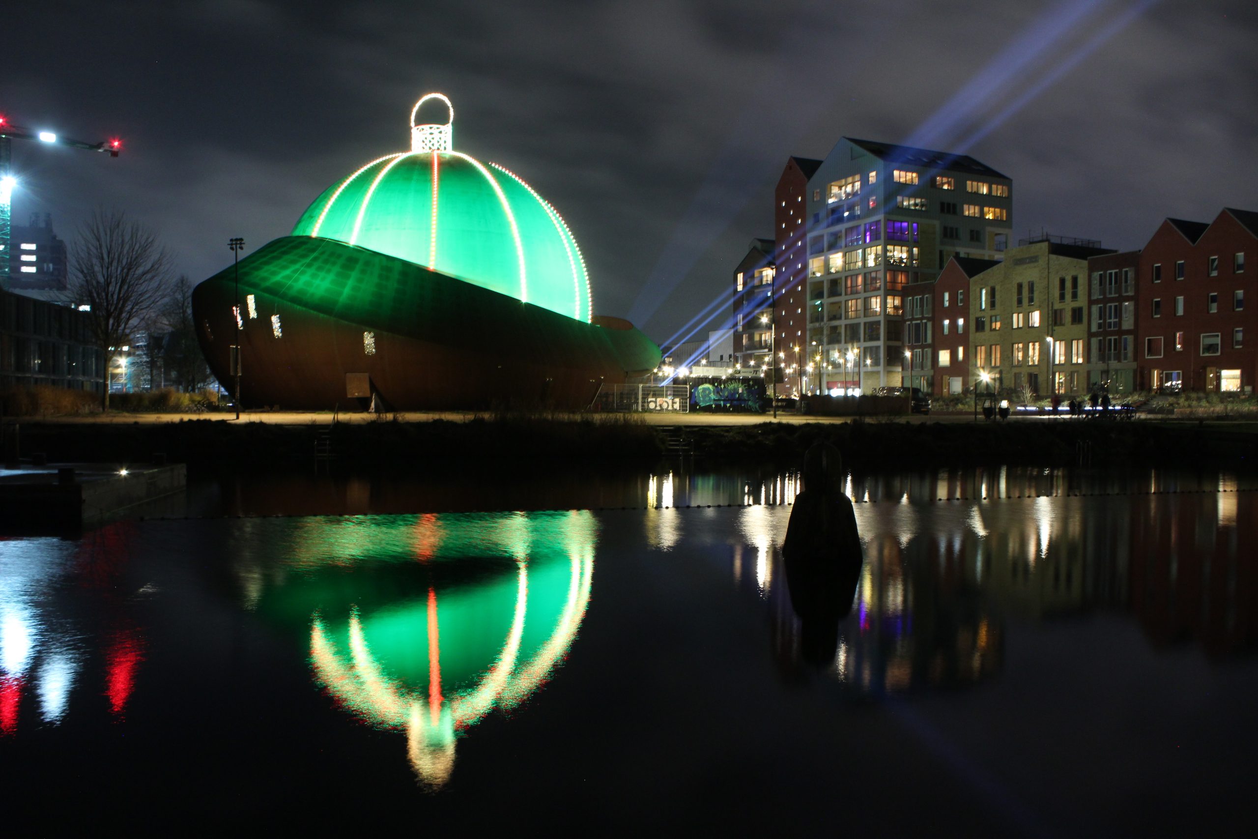 De kerstbal is de hele winter te bewonderen, tot en met de week van Eurosonic/Noorderslag in januari.