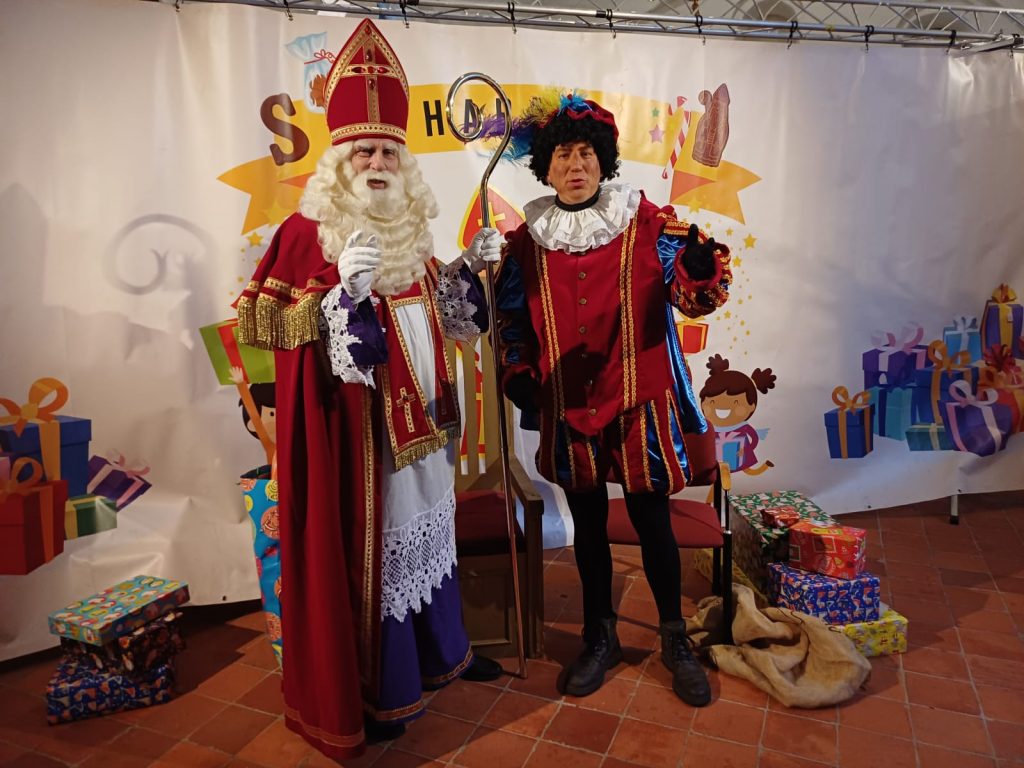 “Dat klopt. Om 09.40 hebben we Sinterklaas opgewacht bij de consistorie van de kerk. Ik stond daar samen met Daphne de Haan, centrummanager van Haren. Al heel snel kwam Sinterklaas tevoorschijn, en weldra was ook de Hoofdpiet aanwezig. Ik had voor Sinterklaas een cadeautje meegenomen. In plaats van dat hij altijd uitdeelt, vond ik het leuk om hem ook eens wat te geven. Daarna is Sinterklaas in het koor van de kerk gaan zitten, dat voor deze gelegenheid helemaal versierd was met onder andere cadeautjes.”