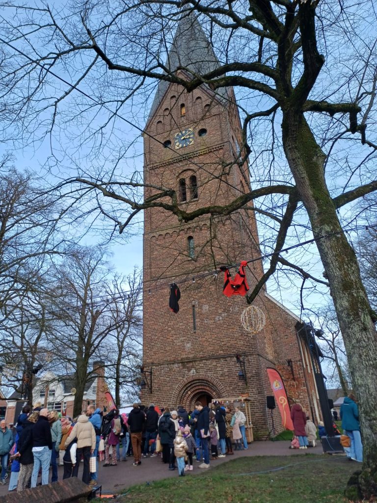 “Dit feest wordt al heel wat jaren georganiseerd. Het is een initiatief van de Sinterklaascommissie, waarbij het financieel mogelijk wordt gemaakt door ondernemers uit het dorp. Deze dagen heeft Sinterklaas zijn werkkamer in de kerk. De Dorpskerk werd gesticht in 1221, ruim achthonderd jaar geleden dus. Wat veel mensen niet weten is dat de kerk gewijd is aan Sint Nicolaas. De Dorpskerk wordt ook wel de Nicolaaskerk genoemd. Eigenlijk kun je dus zeggen dat het voor Sinterklaas vandaag thuiskomen was, omdat de kerk aan hem gewijd is.”