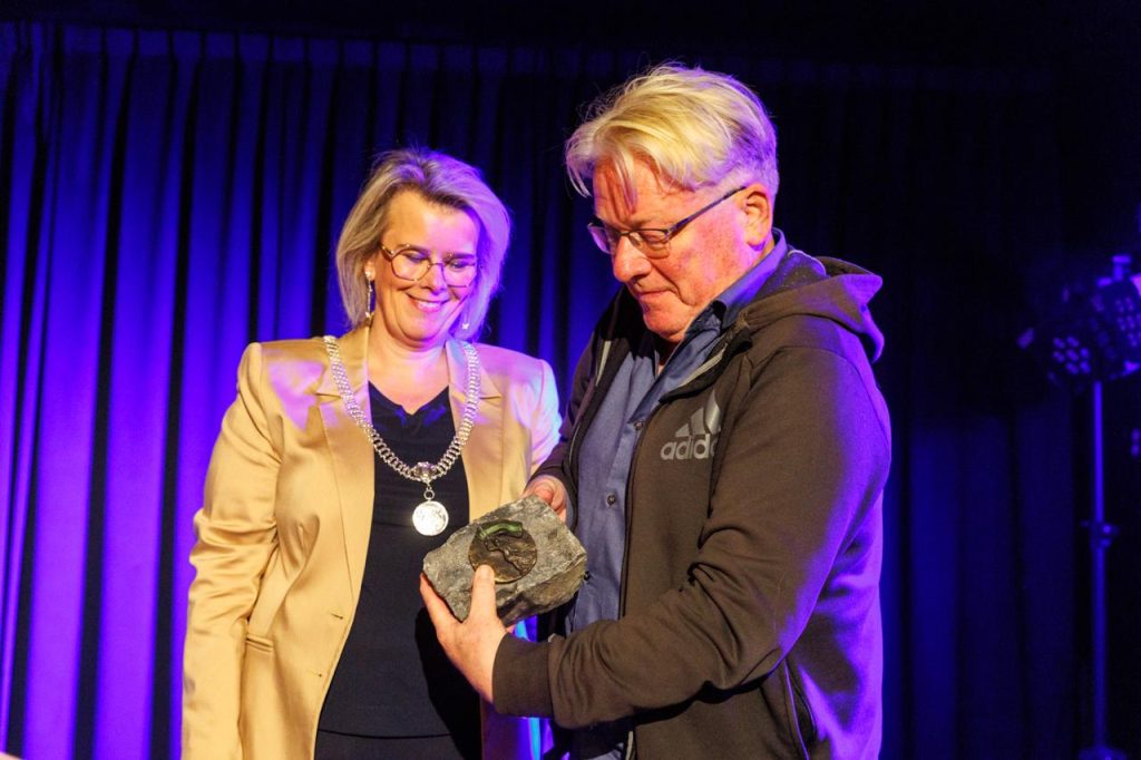Rooie Rinus en Pé Daalemmer vieren dit jaar hun 45-jarige artiestenjubileum. Ze ontvangen de penningen vanwege hun voortdurende bijdrage aan de Groninger taal en cultuur. De onderscheidingen werden uitgereikt door burgemeester Ard van der Tuuk (PvdA) van Westerkwartier en burgemeester Roelien Kamminga (VVD) van de gemeente Groningen.