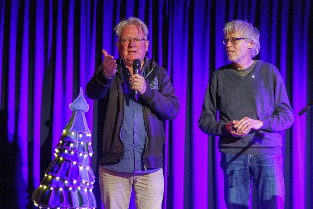 Peter de Haan (Pé Daalemmer) en Frank den Hollander (Rooie Rinus) hebben zondagmiddag een dubbele onderscheiding ontvangen in Zuidhorn. De Haan kreeg de Abel Tasman Erepenning van de gemeente Westerkwartier en Den Hollander de Erepenning van de gemeente Groningen, vanwege hun 45-jarige bijdrage aan de Groninger taal en cultuur.