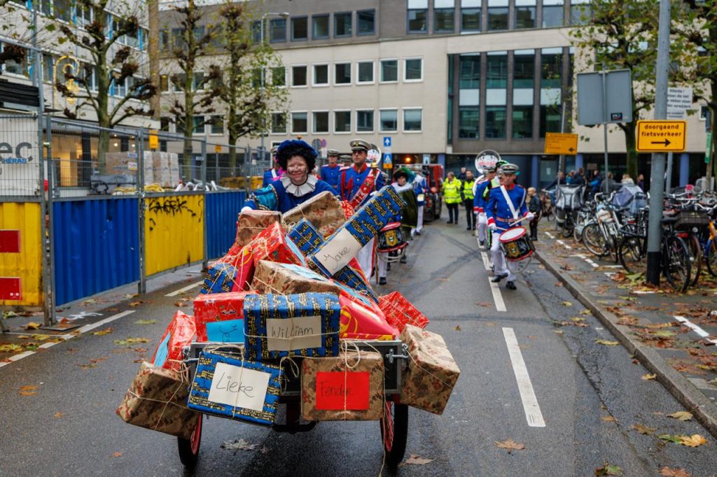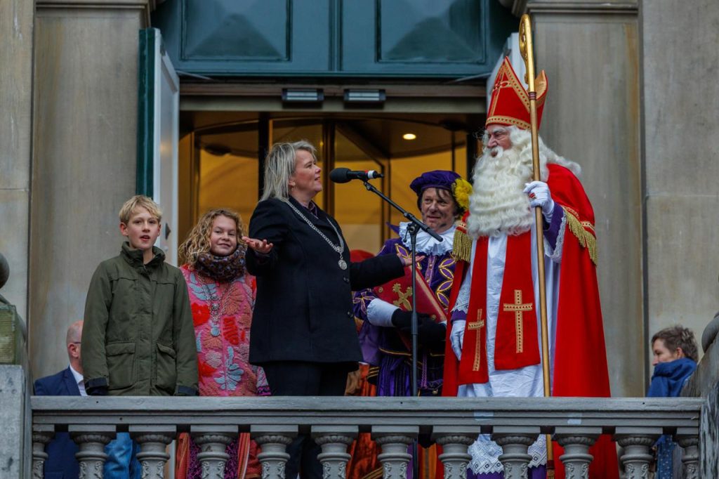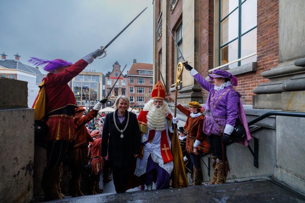 Tijdens de uitzending werd muziek afgewisseld met live-bijdragen vanaf ‘Pakjesboot 12′ en vanuit de stoet die door de binnenstad trok. Want na het aanmeren in de Zuiderhaven trok Sinterklaas met zijn gevolg, onder begeleiding van Gruno’s Postharmonie, door de binnenstad met als eindbestemming het Stadhuis op de Grote Markt. Daar stonden kinderburgemeester Biene, loco-kinderburgemeester Senneh en burgemeester Roelien Kamminga (VVD) op de Goedheiligman te wachten. “Vinden jullie het leuk dat ik er weer ben?”, vroeg Sinterklaas aan het rijk toegestroomde publiek. Een vraag die niet aan dovemansoren was gericht, want er werd enthousiast ‘jaa’ geroepen.