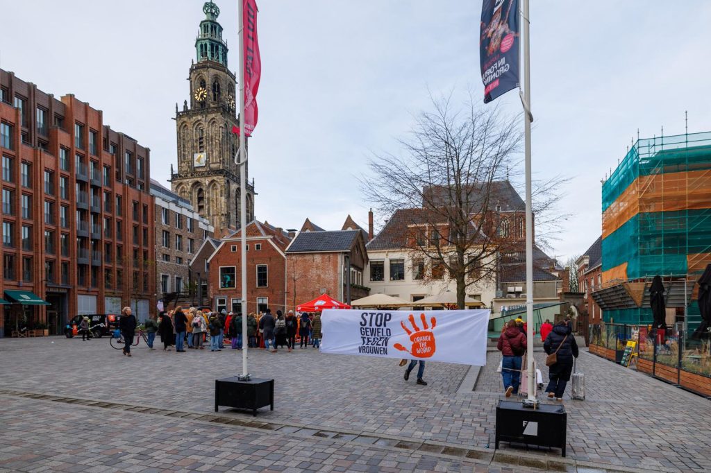 Op de Nieuwe Markt was er daarnaast muziek, waren er sprekers en was er een informatiemarkt te bezoeken, te midden van de 44 paar rode schoenen die de slachtoffers van 2024 symboliseerden. De manifestatie valt in de periode dat ook ‘Orange the World’ plaatsvindt. Dit is een wereldwijde campagne van de VN waarbij er aandacht wordt gevraagd voor het stoppen van geweld tegen vrouwen en meisjes. De campagne loopt jaarlijks van 25 november (Internationale Dag tegen Geweld tegen Vrouwen) tot 10 december (Internationale Dag van de Mensenrechten) en omvat activiteiten zoals het oranje uitlichten van gebouwen, lezingen, debatten en demonstraties. Het doel is om bewustwording te creëren en een einde te maken aan alle vormen van geweld tegen vrouwen en meisjes.