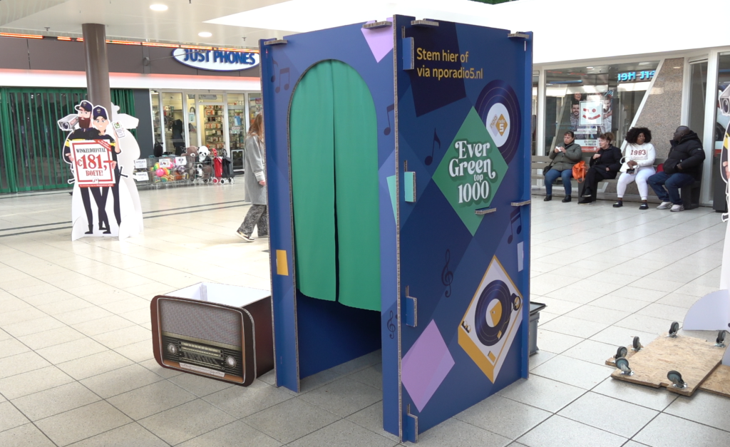 Het leek even vreemd: de verkiezingen zijn voorbij, maar vanmiddag stond er toch echt een stemhokje in winkelcentrum Paddepoel. Alleen was er dit keer geen rood potlood en papier, maar een tablet. Bezoekers konden hun favoriete nummers kiezen voor de Evergreen Top 1000 van NPO Radio 5.