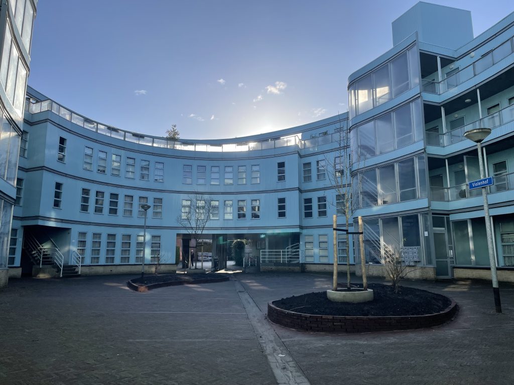 De Violenhof in de Hortusbuurt-Ebbingekwartier heeft een opvallende metamorfose ondergaan. Waar de doorgang tussen het Nieuwe Kerkhof en de Violenstraat tot voor kort bestond uit een kaal pleintje met enkele plantenbakken, is nu een groene ruimte gecreëerd.