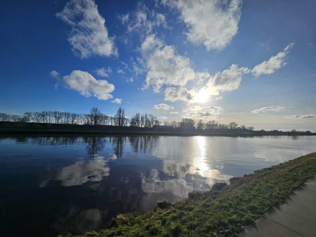 Zondag is het bewolkt en waait er een koude wind uit het zuiden tot zuidoosten die vrij krachtig wordt, windkracht 4 tot 5. Het is bewolkt en in de middag volgen perioden met natte sneeuw. Het kwik schommelt dan rond een waterkoude 1 graad en als het hard genoeg gaat sneeuwen zou het wat wittig kunnen worden.