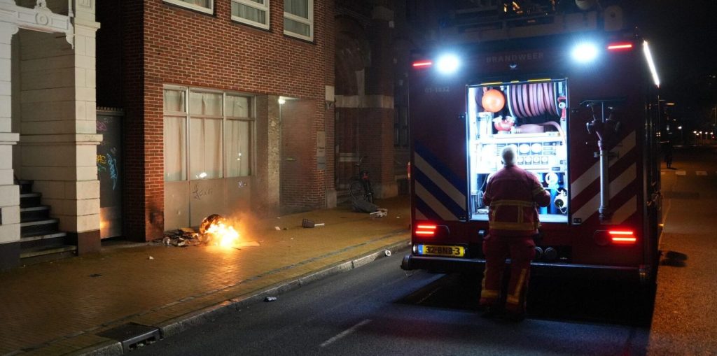Aan de Stationsstraat stond in de nacht van zaterdag op zondag een bult afval in brand.