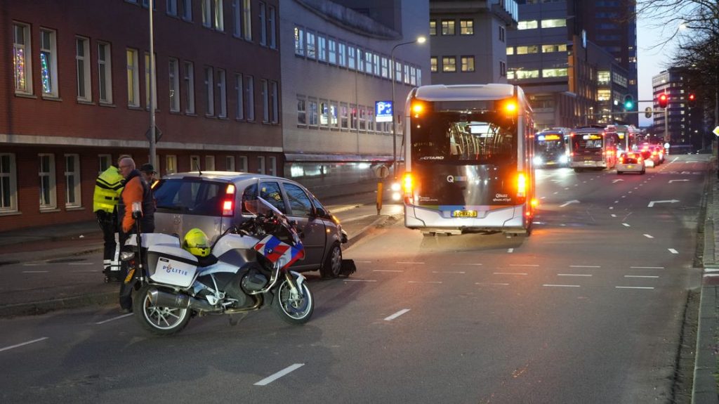 Maandag aan het eind van de middag zijn een auto en bus op elkaar gebotst op de Stationsweg in Groningen. Door de botsing ontstond verkeershinder rond het centraal station.