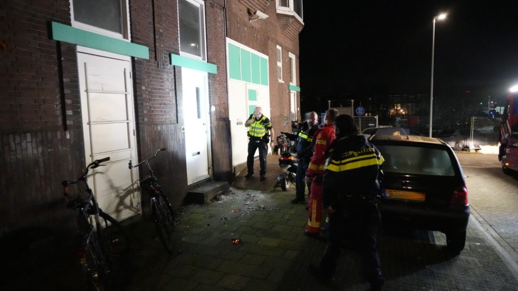 De melding van een woningbrand kwam rond 00.30 uur bij de hulpdiensten binnen waarna een tankautospuit en een hoogwerker naar de locatie werden gestuurd. Toen zij arriveerden bleek er een kleine brand te woeden tegen de woning aan. Deze kon eenvoudig onder controle worden gebracht. “Een buurtbewoner wist te vertellen dat de bewoner van de betreffende woning het vuur zelf had aangestoken”, vertelt de nieuwsfotograaf. “Toen agenten met de bewoner in gesprek wilden gaan kwam hij weliswaar naar de voordeur, maar deed hij deze deur niet open.”