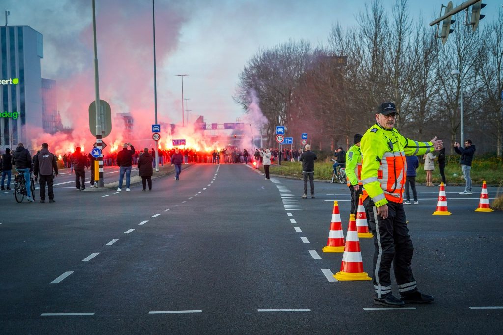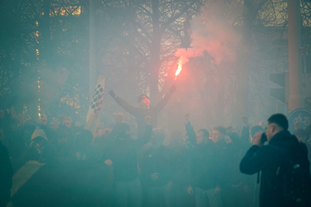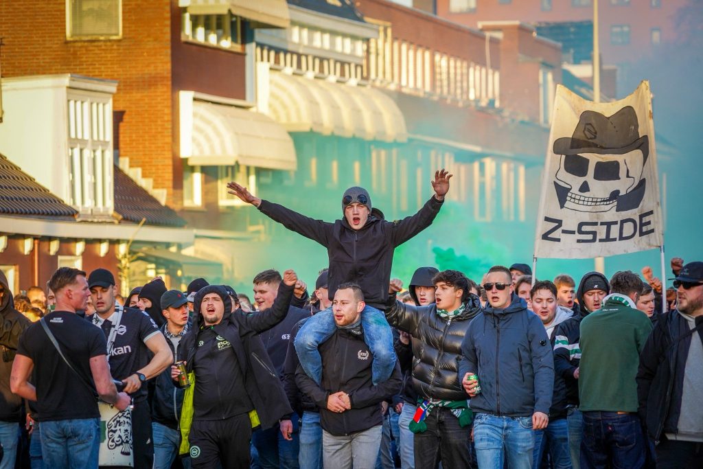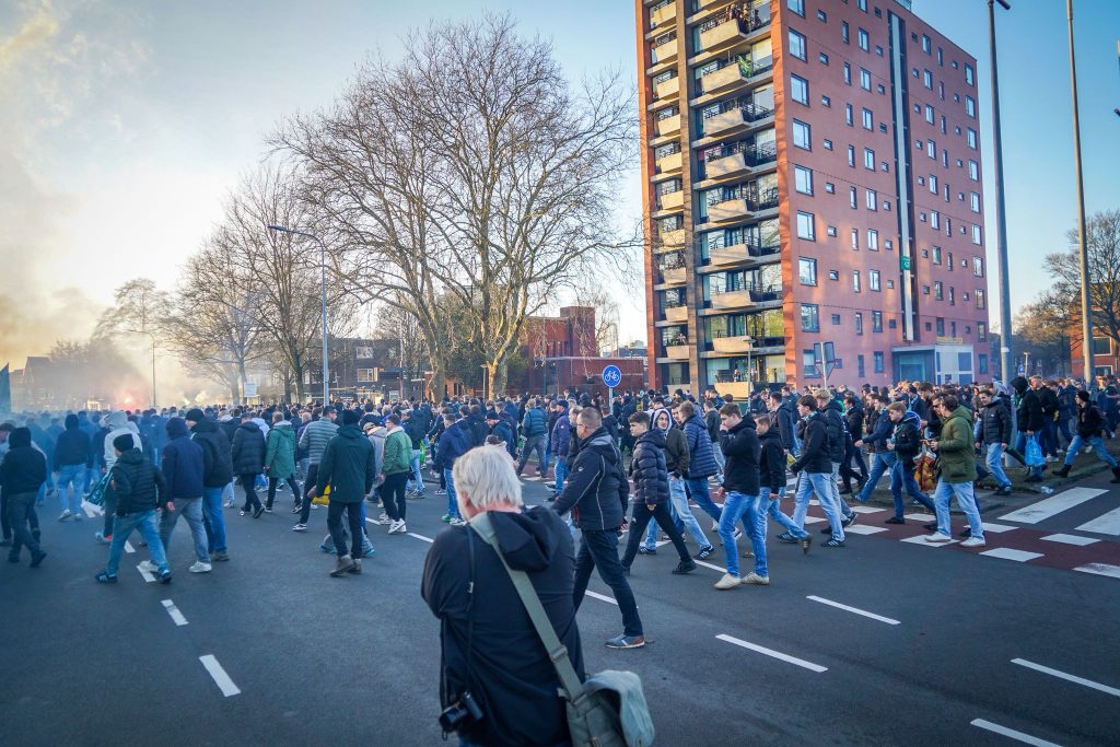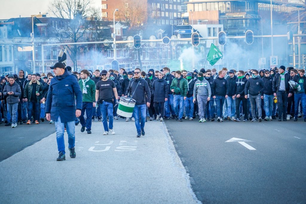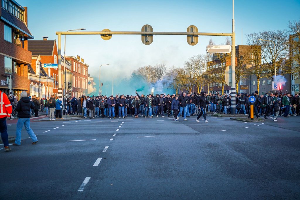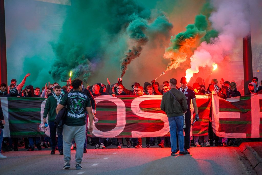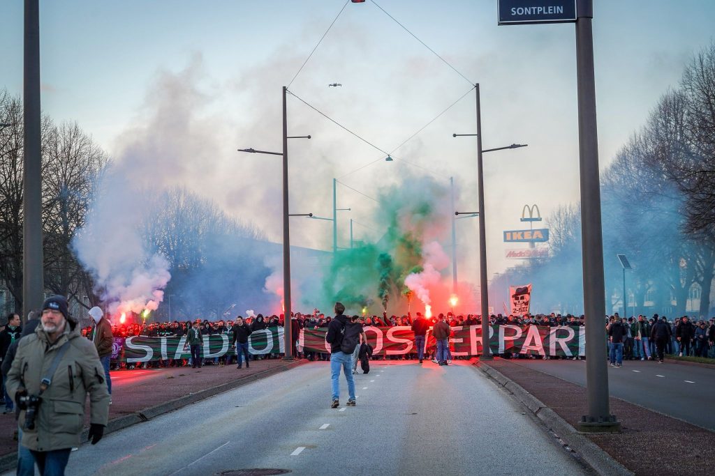 Tijdens de corteo klonk er luid gezang, werd vuurwerk afgestoken en voerden de fans een groot spandoek mee met de tekst ‘stadion Oosterpark’. Op de Oosterhavenbrug kwam er vanuit tegenovergestelde richting een ambulance met spoed aangereden. De supporters maakten voor het voertuig ruim baan, zo is te zien in onderstaande video.