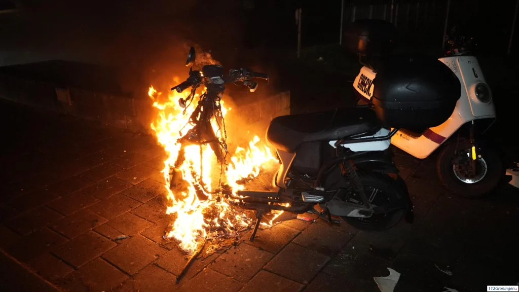 Bij het voetbalveld op de kruising van de Orchideestraat met de Leeuwenburgstraat vloog zaterdagavond een deelscooter in brand. De scooter is volledig uitgebrand. Dat meldt 112Groningen.nl.