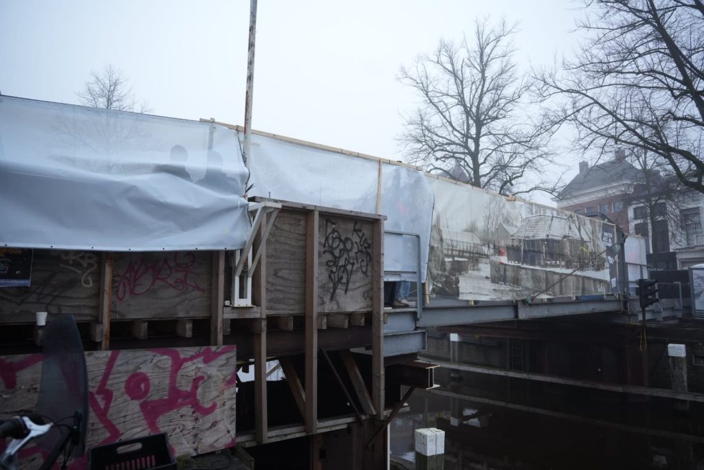 Wie nog een mooie foto van WinterWelVaart wil maken vanaf de Visserbrug komt bedrogen uit. Er zijn schermen geplaatst aan de tijdelijke fiets- en loopbrug over de Hoge der A, om te voorkomen dat mensen uitgebreid stilstaan op de brug, foto’s maken en daardoor opstoppingen veroorzaken.