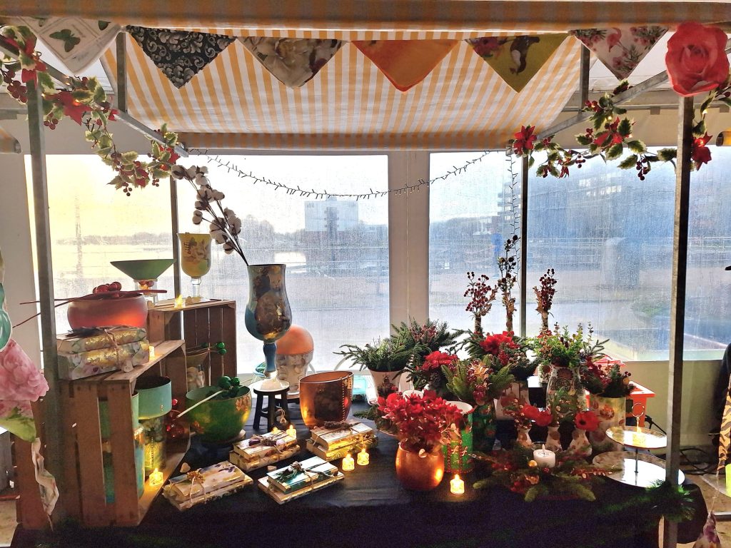 “We boden een overdekte kerstmarkt aan met feestelijk verlichte en verwarmde tenten”, vertelt Elly Hohé van de organisatie, terwijl zij en haar collega’s de laatste kraampjes aan het afbreken zijn. “In totaal hadden we 22 standhouders met een heel gevarieerd aanbod. Je moest denken aan kerstkaarten, mutsen, sieraden, kleding en kerstversieringen.”