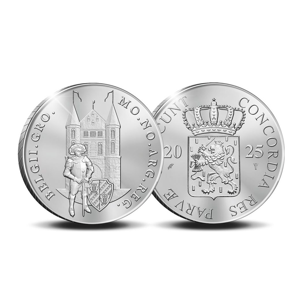 De voormalige Poelepoort in Groningen staat afgebeeld om de nieuwe Zilveren Dukaat van de Koninklijke Nederlandse Munt. De munt is vanaf nu verkrijgbaar.