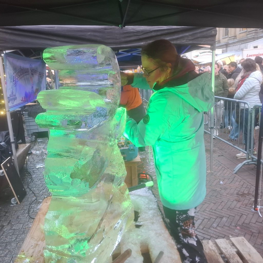 De sculpturen werden gemaakt in een tent aan de zijde van het Stadhuis. Rond 12.00 uur werden grote ijsblokken neergezet, waarna vijf internationale kunstenaars aan de slag gingen. Zij waren uit verschillende Europese landen naar Groningen gekomen en maakten gebruik van diverse materialen om het ijs in de juiste vorm te krijgen. “Ze hebben iets prachtigs neergezet”, aldus Akkerman. “Eén van hen heeft bijvoorbeeld de Martinitoren gemaakt. Een ander heeft zich toegelegd op het Peerd van Ome Loeks. Uiteindelijk zijn er vijf prachtige ijssculpturen gerealiseerd.”