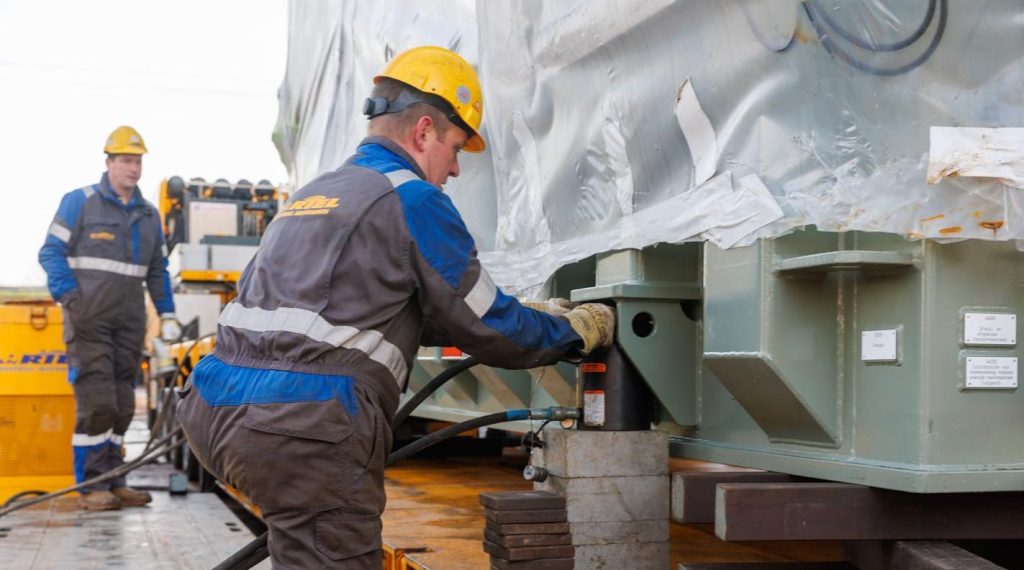 Rond acht uur begon het zware werk bij het station zelf. Monteurs en kraanmachinisten tilden de eerste transformator met hydraulische vijzels langzaam omhoog. Daardoor konden ze een groot laadplatform onder de machine schuiven. Met dat platform reden ze de transformator vervolgens naar zijn plek op het terrein. Dinsdag gebeurde hetzelfde met de tweede.