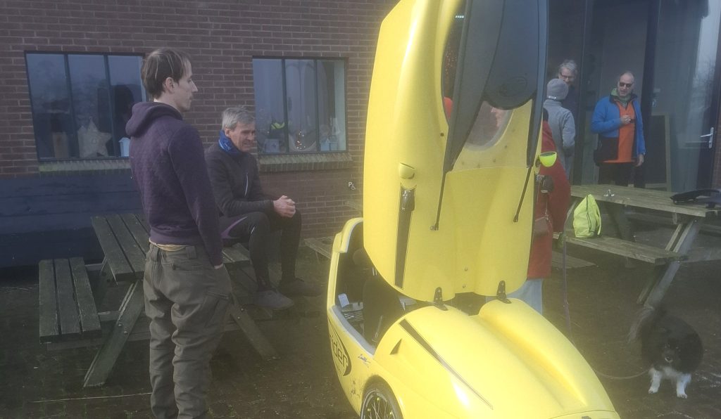 “In Ierland zijn er maar drie velomobielen,“ vertelt hij. “In Engeland misschien dertig. Dus vergeleken met Nederland is het eigenlijk niks. Hier kom je je eigen soort tegen. Als ik deze velomobielen zie, is dat een droom die ik als ingenieur al tien jaar nastreef.”