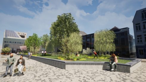 De gemeente begint komend voorjaar met de aanpak Damsterplein. Het kale plein krijgt een brede strook bomen en groen en er komt een ondergronds opvangsysteem van regenwater. Hierdoor wordt het een stuk koeler op het plein.