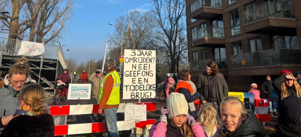 Rijkswaterstaat besloot geen nieuwe tijdelijke brug aan te leggen, want de dienst en het ministerie vonden de kosten te hoog en de tijdwinst te klein. Maar zonder tijdelijke brug moeten ongeveer twintigduizend mensen drie jaar lang elke dag bijna drie kilometer omrijden via de Noordzeebrug of de Oostersluis. De actievoerders vinden dat onredelijk. Ook zijn ze bang voor de onveilige omleidingsroutes, vooral voor scholieren en minder mobiele mensen. Daarnaast vinden ze de omleidingen lang en niet geschikt voor zoveel extra verkeer.