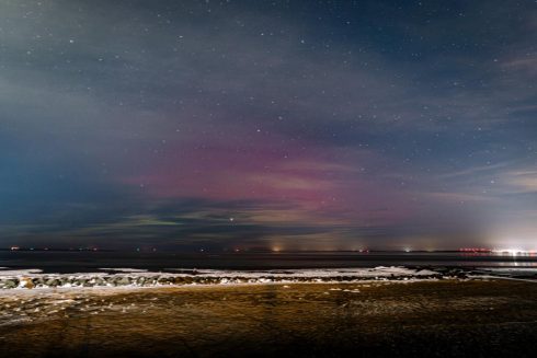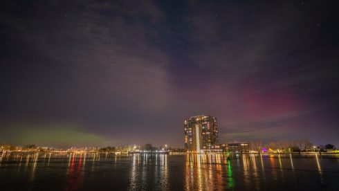 “Ik kreeg aan het einde van de avond het bericht dat er noorderlicht te zien was”, vertelt fotograaf Gijs Bouman van Beeman Productions. “Ik twijfelde of ik op pad zou gaan, want de gevoelstemperatuur lag op dat moment rond de -8 graden. Aan de andere kant: foto’s maken van het noorderlicht in een winters landschap, hoe vaak krijg je die kans? Ik ben naar Delfzijl gereden, waar ik vanaf de dijk een prachtig zicht heb op de Eems en weinig last heb van kunstlicht.”