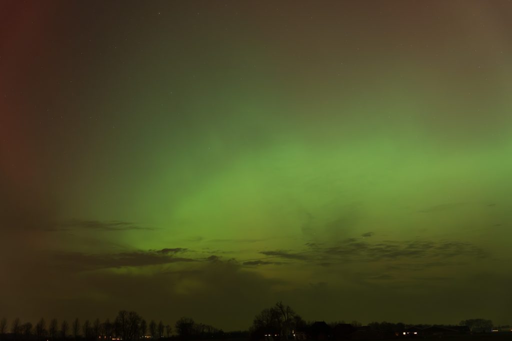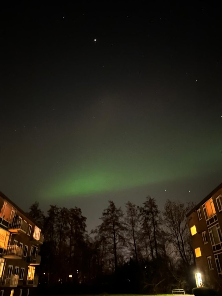 Maandagavond was op verschillende plekken, waaronder in de Stad, het noorderlicht te zien. Het bijzondere lichtfenomeen was in sommige wijken zowel met het blote oog als met een camera te zien.