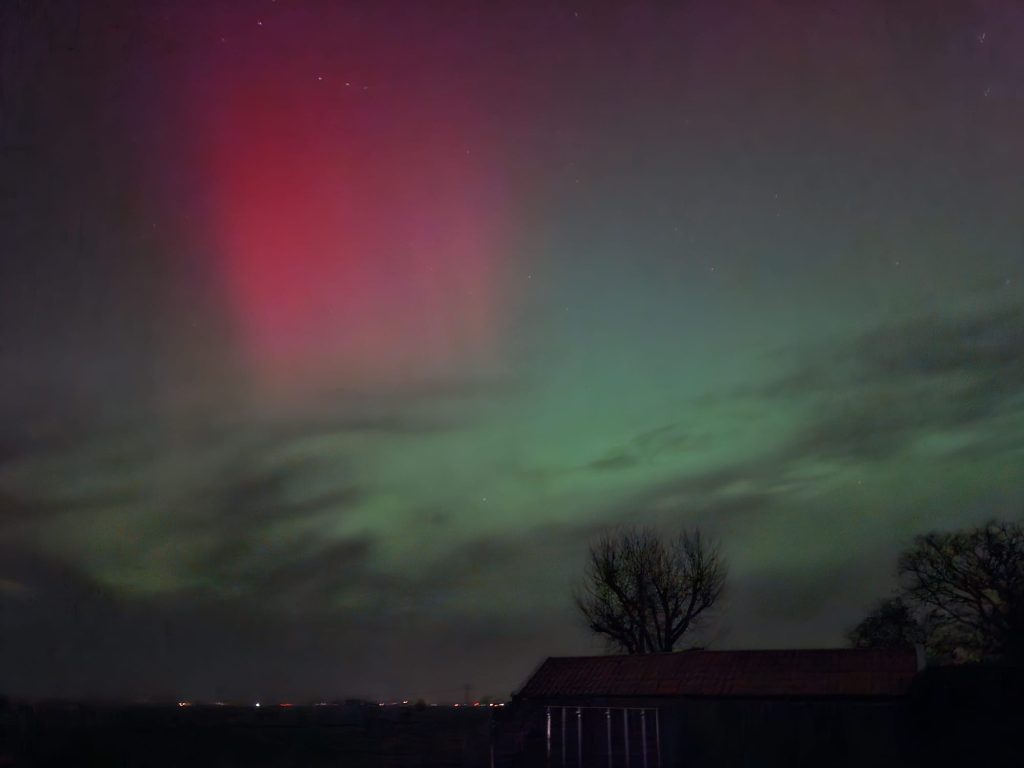 Een schouwspel van roze met groen speelde zich af boven Groningen. OOG ontving verschillende foto’s: