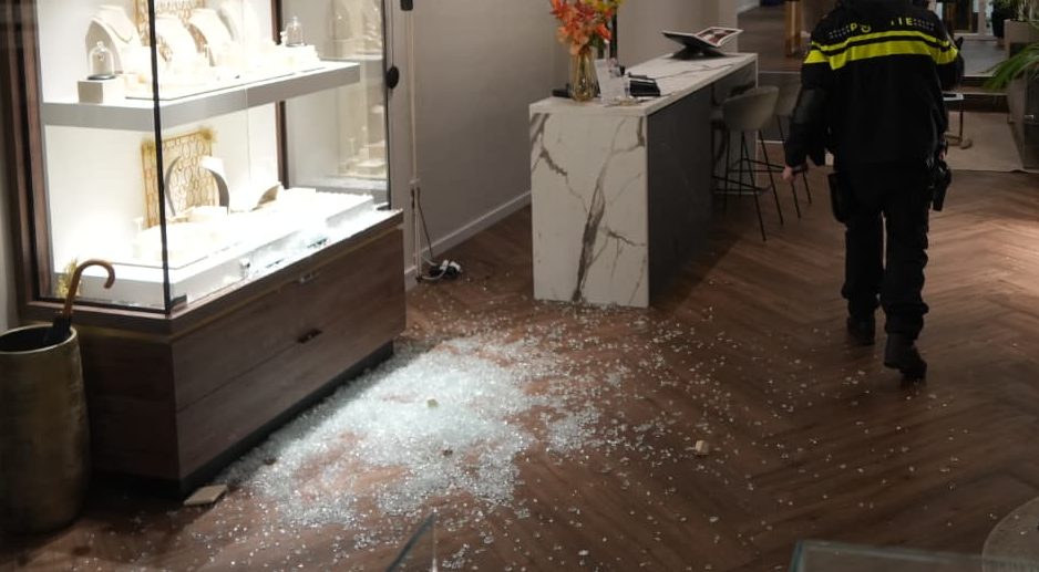 Juwelier en goudkantoor GoudPunt in het stadscentrum van Groningen is maandag eind van de middag overvallen. Op foto’s van 112 Groningen is te zien hoe een deel van de vitrines kapotgeslagen is.